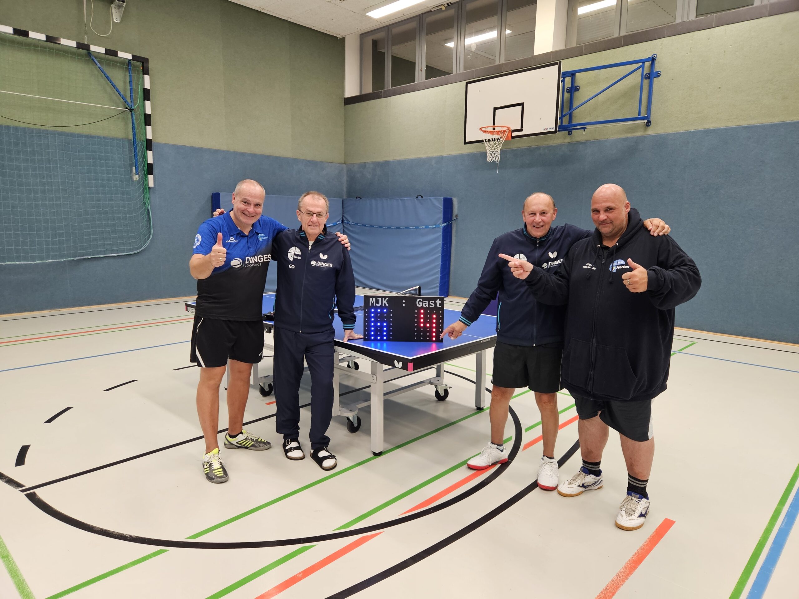 In den Einzeln wussten die MJKler nun zu überzeugen. Gerd tat sich anfangs schwer und verlor die ersten beiden Durchgänge. Doch der Abwehrspieler kam noch einmal zurück und sicherte sich die Sätze 3 und 4 knapp in der Verlängerung. Der Kampfgeist zahlte sich aus und Gerd gewann auch den finalen Satz mit 11:8. Jürgen startete gut in sein Einzel und konnte gut mit dem Spitzenspieler aus Erkenschwick mithalten, doch leider reichte es nicht ganz aus und verlor trotz knapper Sätze mit 1:3. Peter hatte gar keine Probleme und siegte locker mit 3:0. Roland bereitete das Aufschlagspiel seines Gegners Probleme und kam nicht über ein 0:3 hinaus. Somit stand es 3:3 in der Halbzeit.